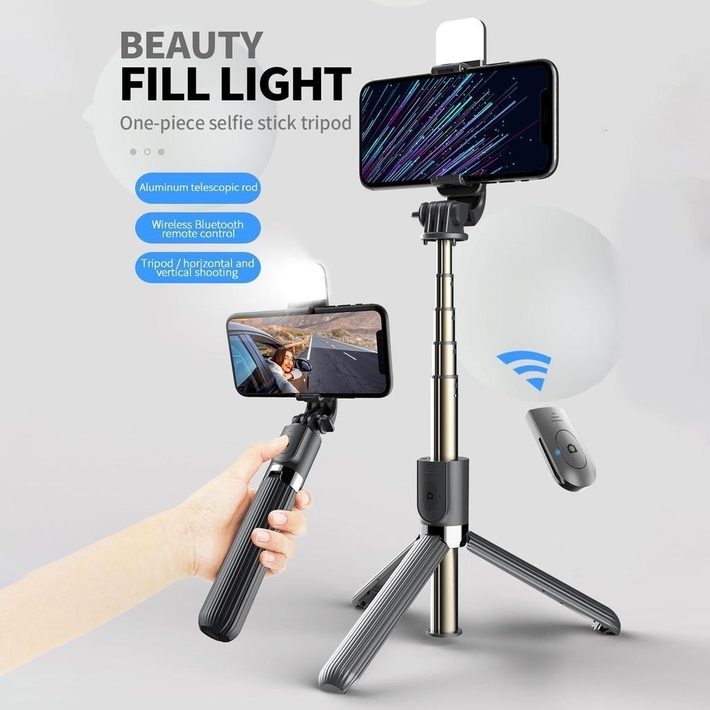 Mobile selfie stick, tripod remote control, three in one retractable strip light, Bluetooth camera
